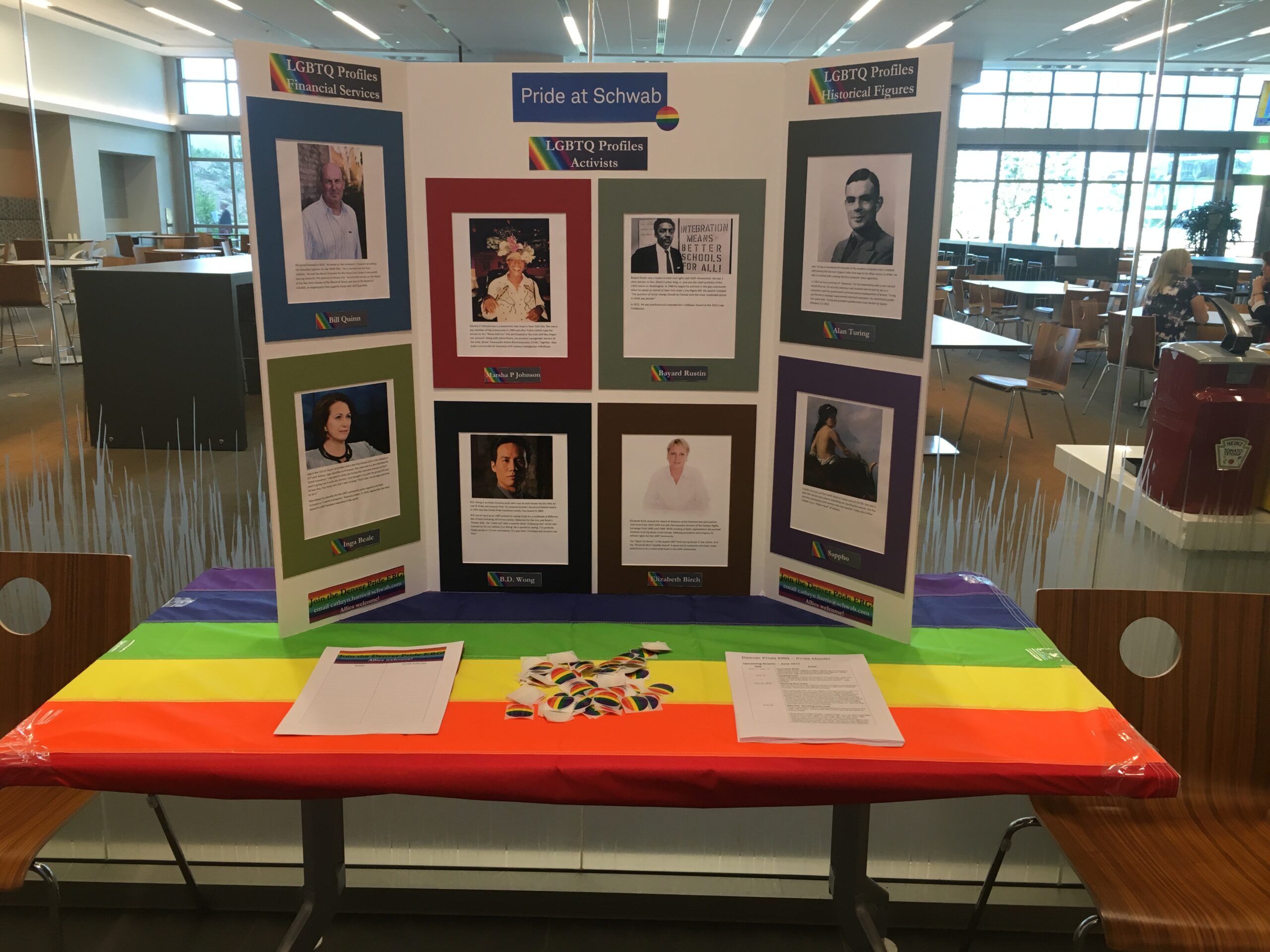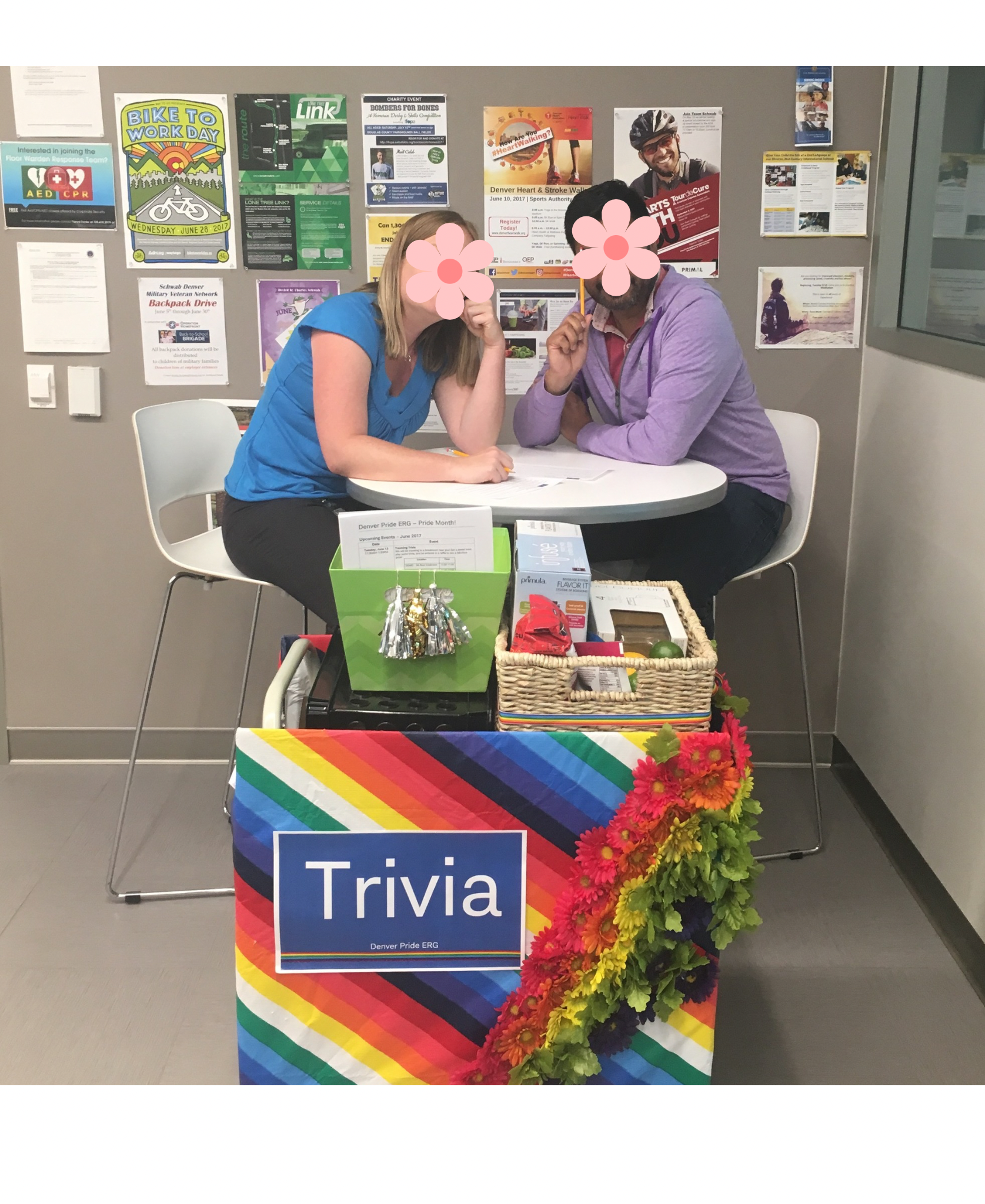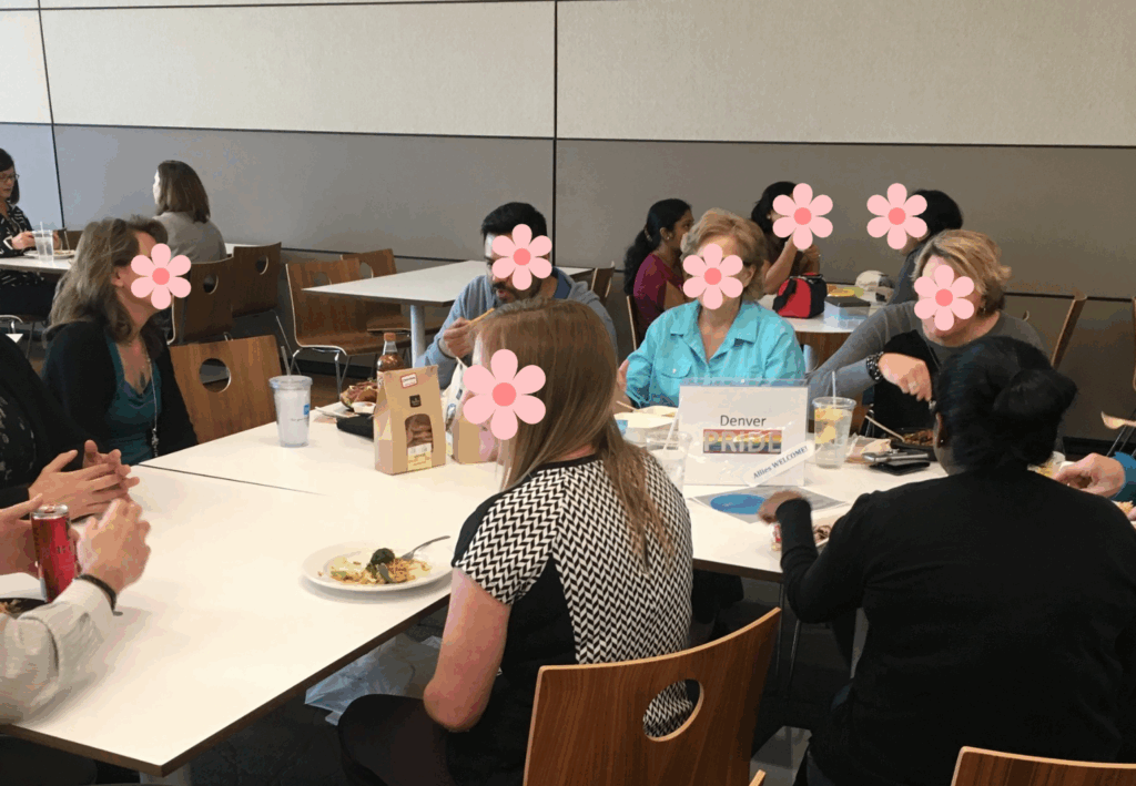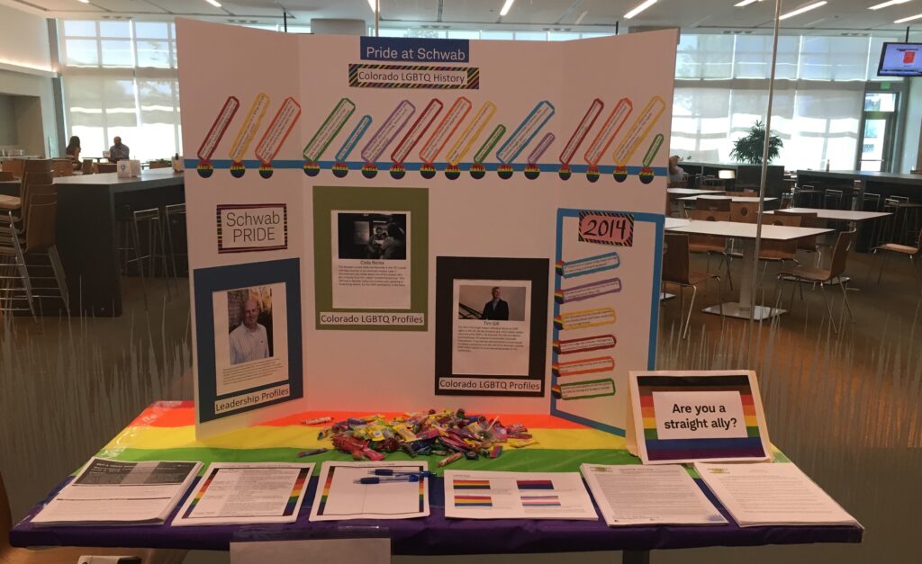 During my time as co-chair, I planned and hosted: Pride lunches, Pride month information booths, movie afternoons, speed networking, traveling trivia, bake sales, fundraisers, Colorado AIDS walk team. Below you can see some photos from these events.